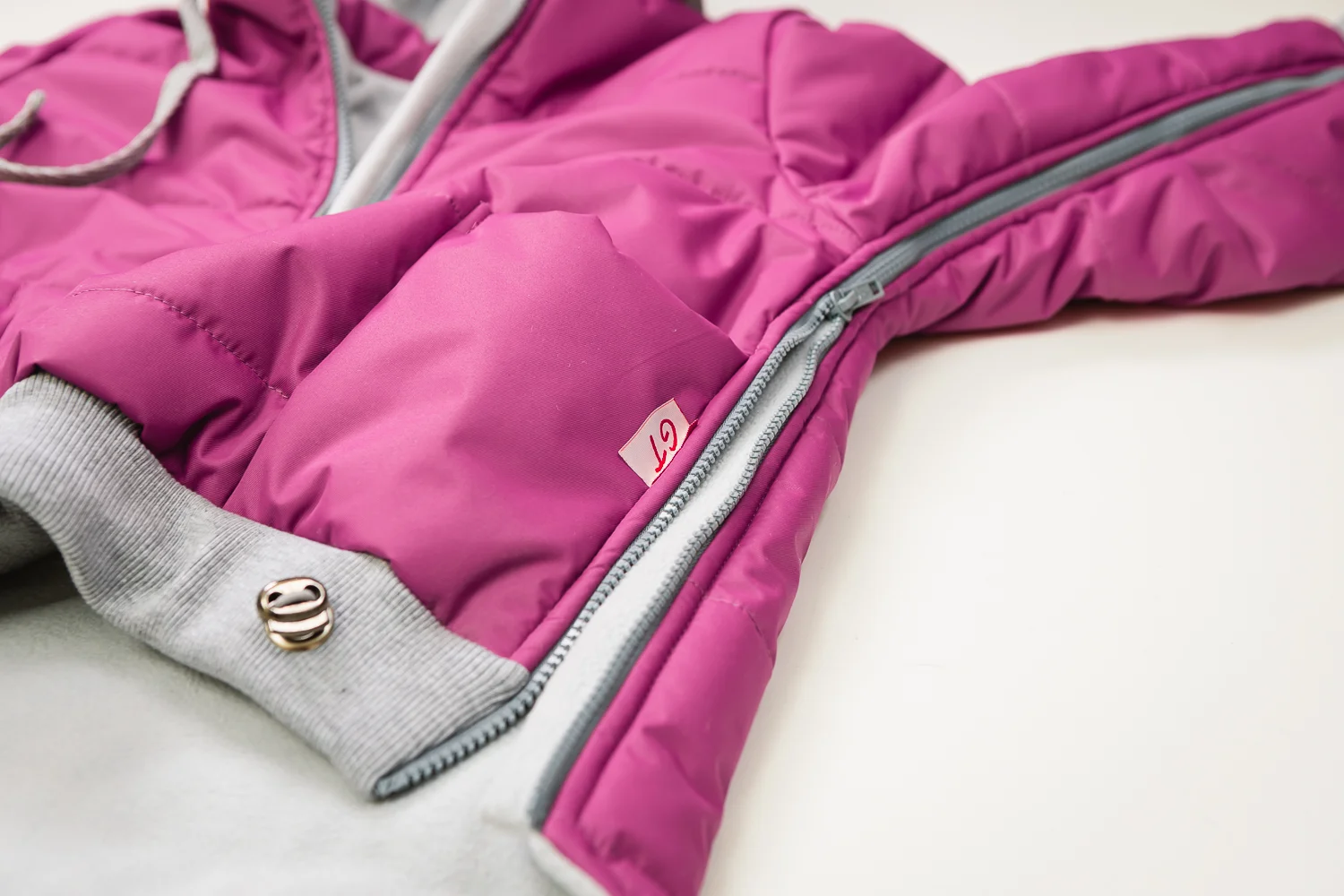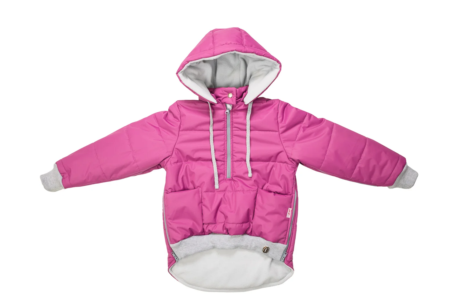 • на переднем поясе есть утягивающий элемент, регулирующий ширину низа куртки.