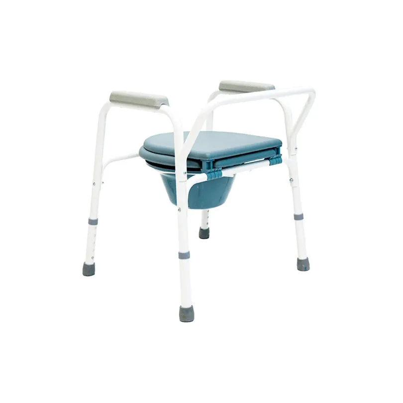 Кресло-туалет на опорах представляет собой санитарный стул на телескопических ножках, его можно регулировать по высоте и использовать людям разного роста. Стул портативный: благодаря небольшому весу (8 кг) кресло-туалет можно перемещать. Четыре телескопические ножки с резиновыми наконечниками обеспечивают устойчивость и безопасность при использовании. Рама сделана из стали и имеет антикоррозионное покрытие. Эта модель стула с санитарным оснащением пассивного типа имеет мягкие накладки на подлокотниках. Откидная крышка, съемное сиденье и судно изготовлены из прочного пластика. Их легко очищать, при необходимости раму можно установить над обычным унитазом.