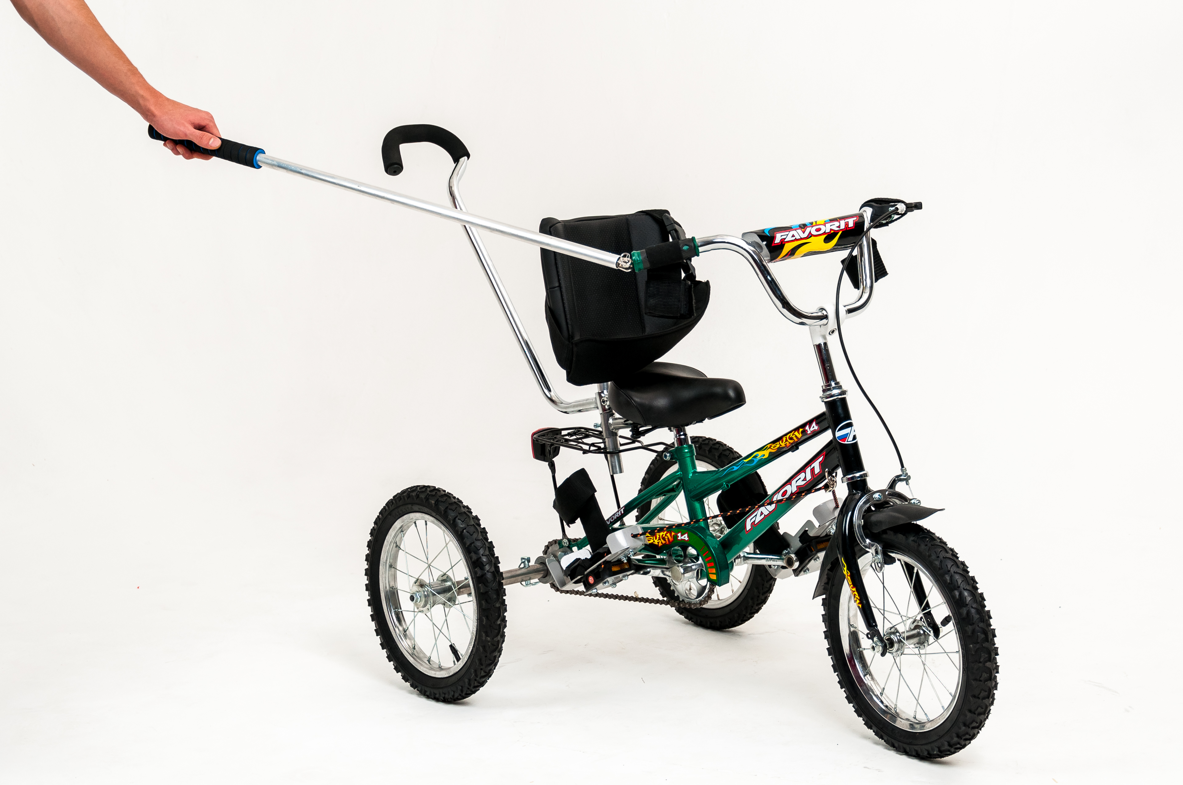 Отдельно крепиться к рулю, и служит для управления передним колесом.