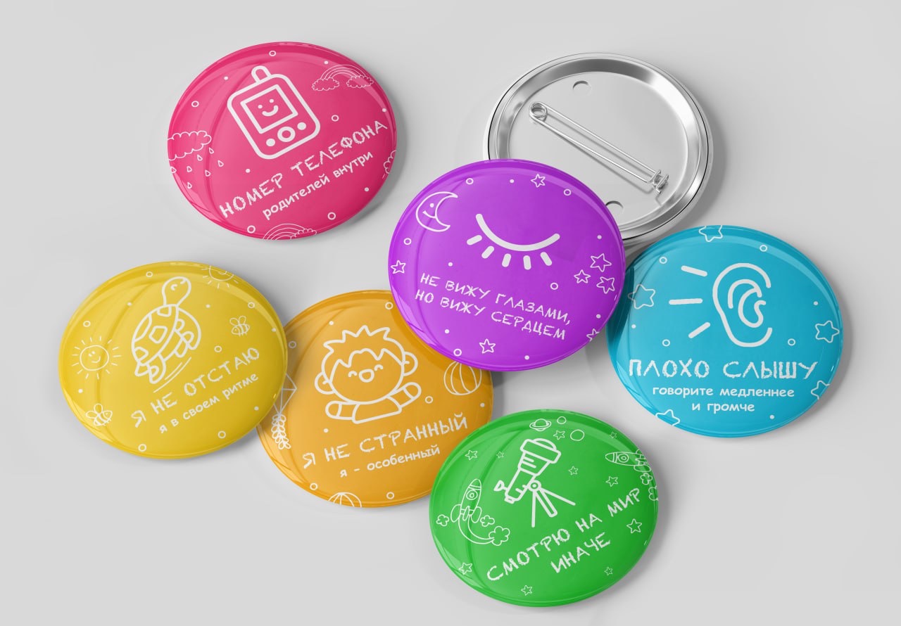 Сигнальные значки - инструмент для комфорта и безопасности вашего особенного ребенка. Значки вежливо информируют окружающих, снимая тревожность и неловкость. Дарите уверенность ребенку и спокойствие себе. Простое решение для большего понимания в обществе.