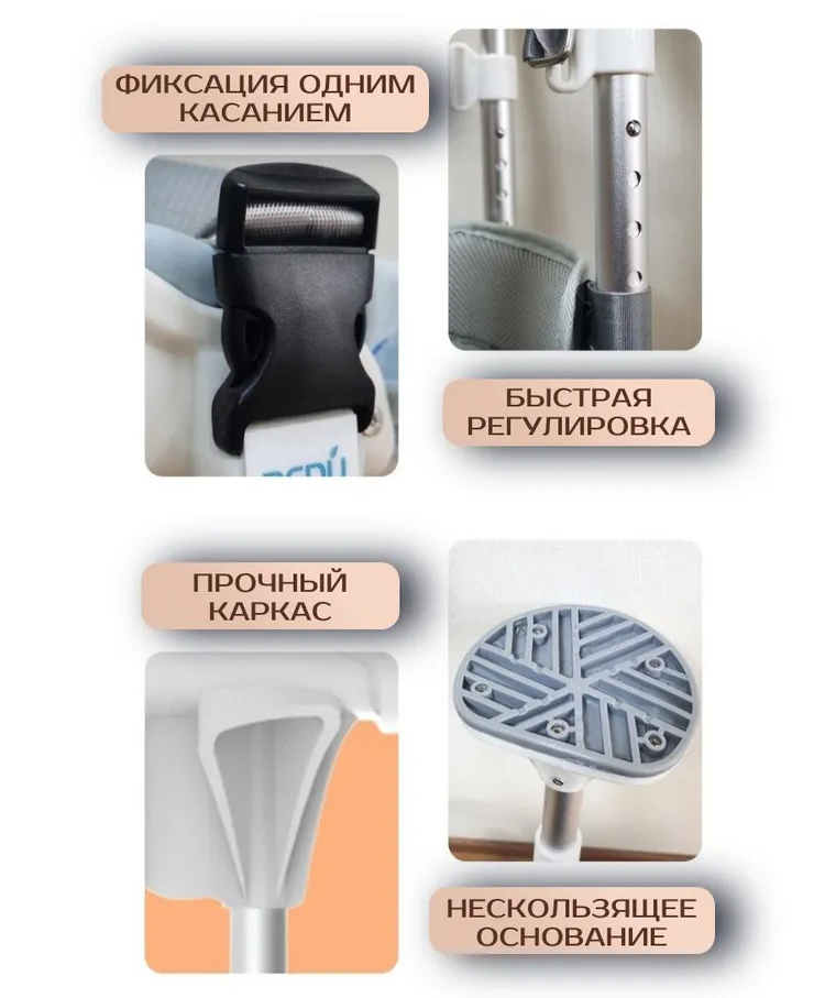 Костыли Dedu- лучшая альтернатива обычным подмышечным, локтевым костылям при всех травмах ниже колена. Опорный под коленный костыль позволяет перемещаться без помощи рук и вести обычный образ жизни: ходить на работу, в магазин, прогуливается с собакой, ездить на автомобиле. Вы не будете испытывать боль и не удобства.Костыль выполнен из прочного материала, что позволяет выдерживать нагрузку до 200 кг. Минимальный рост для использования 147 см, максимальный 188 см. Отлично подходит для взрослых и детей. Благодаря высокой устойчивости, костыль можно использовать в любое время года. Протектор имеет большую площадь поверхности для увеличения устойчивости. Коленная подушка имеет встроенные каналы для потока воздуха и охлаждения, с улучшенной эластичной пеной для большего комфорта.